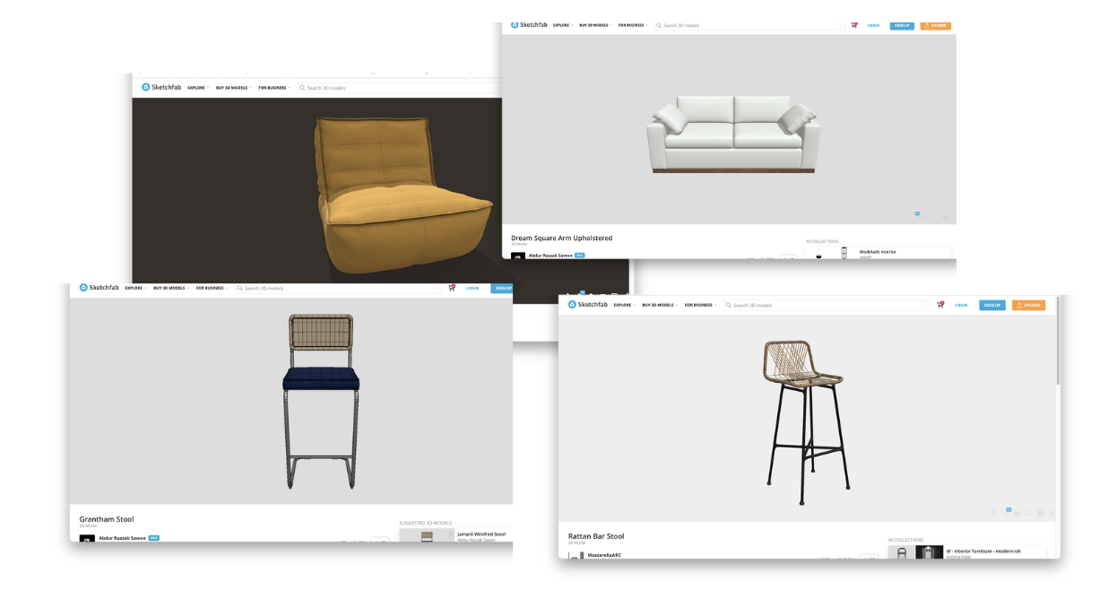 Therefore, we decided to create 3D product models. Currently, I am working on this by taking screenshots of products from Sketchfab and then moving them into Photoshop to add effects, making them look like professional studio photos.